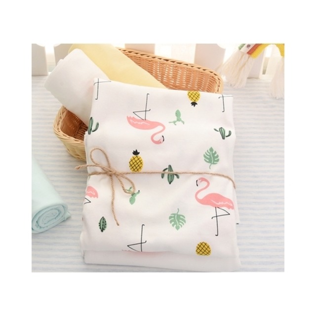 ニット 生地 綿 コットン 約190cm幅 動物 アニマル フラミンゴ パイナップル サボテン 葉 ハンドメイド 子供服 ベビー服 F-0002-13 【お取寄せ】