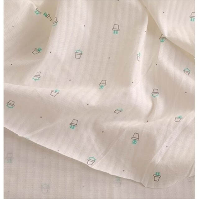 ニット 生地 綿 コットン 約190cm幅 植物 植木鉢 サボテン 木 葉 ハンドメイド 子供服 ベビー服 F-0002-3 【お取寄せ】
