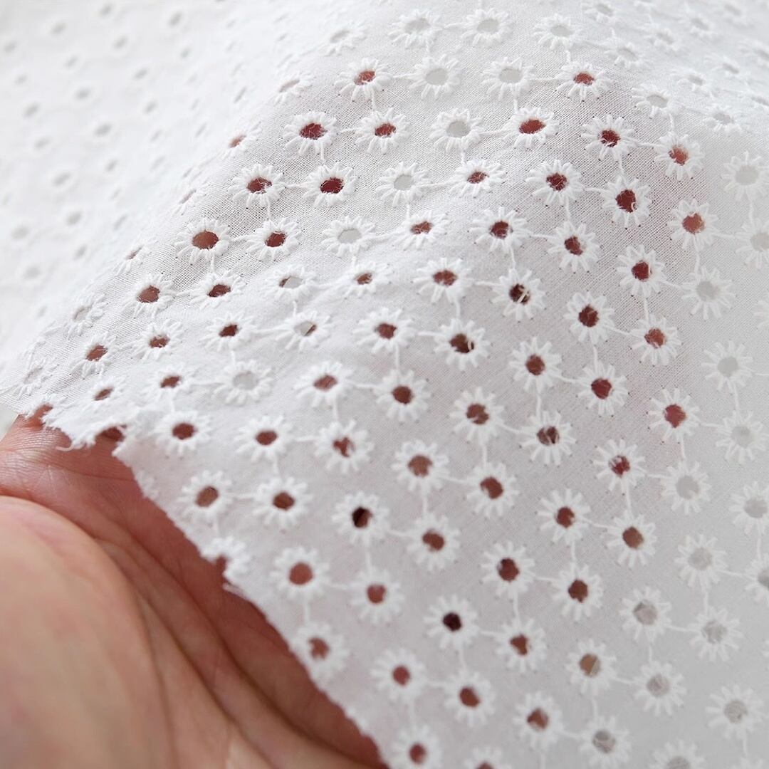 レース パンチングレース 綿 コットン 生地 約140cm幅 刺繍 白 ハンドメイド F-0027-1 【お取寄せ】