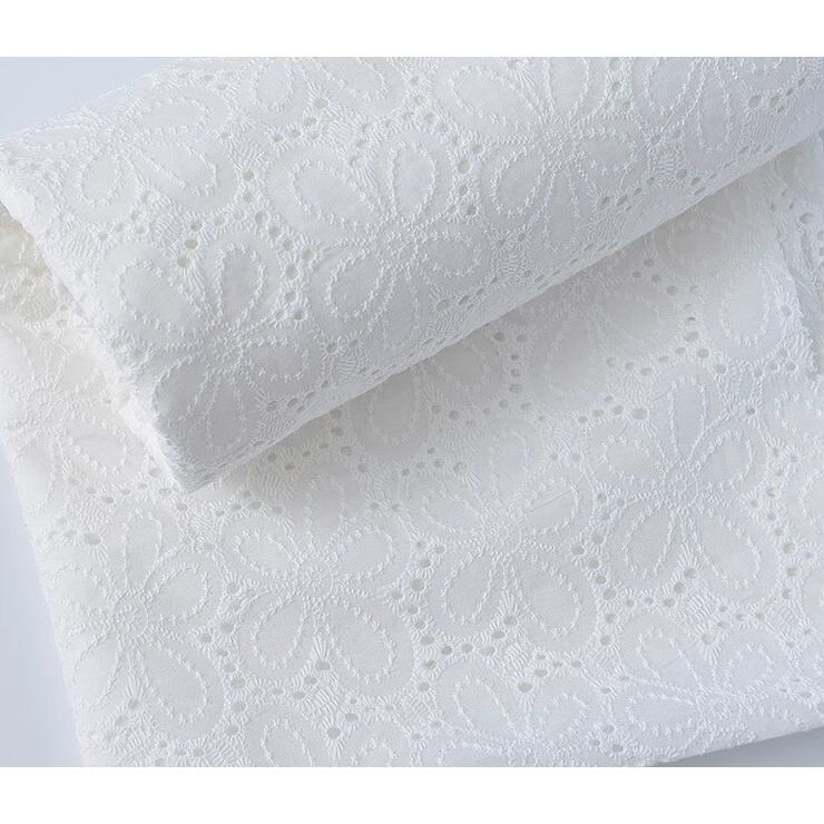 レース パンチングレース 綿 コットン 生地 約130cm幅 花 刺繍 白 ハンドメイド F-0027-21 【お取寄せ】