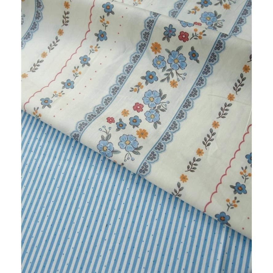 花柄 ストライプ柄 水玉 ドット柄 綿 コットン ツイル 生地 約160cm幅 植物 青 ブルー ハンドメイド F-0029 【お取寄せ】