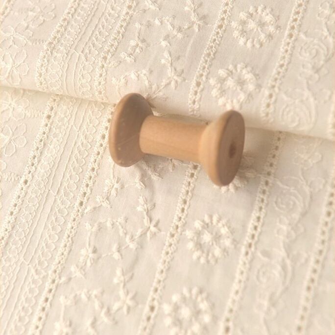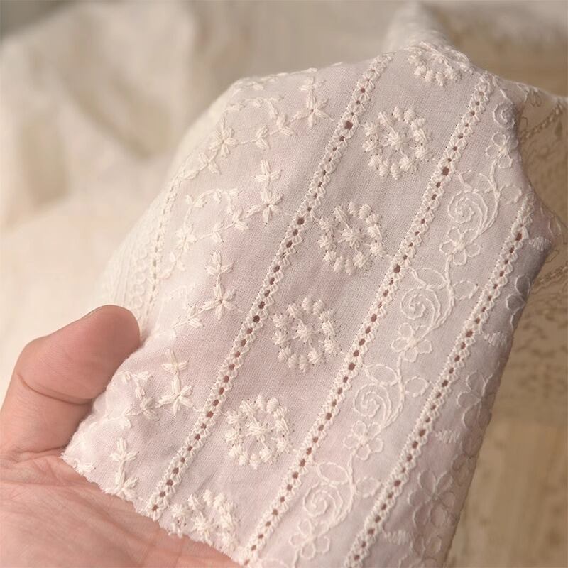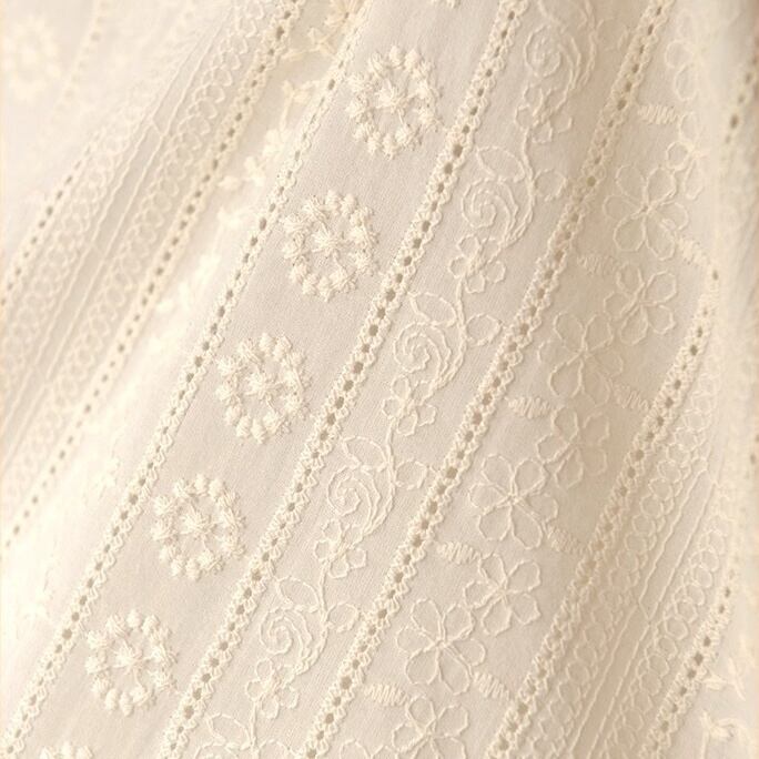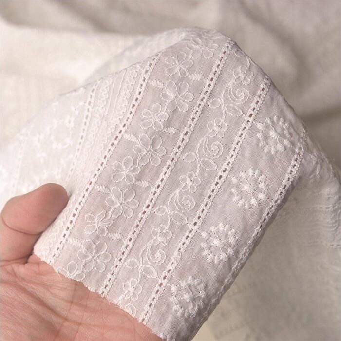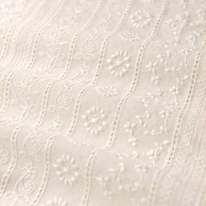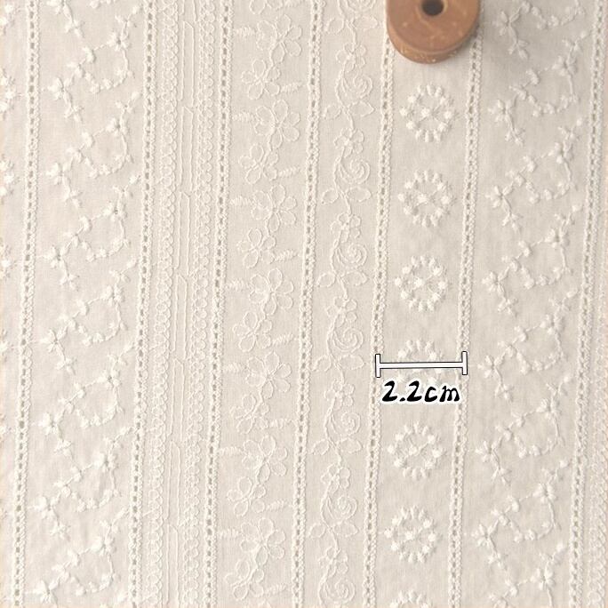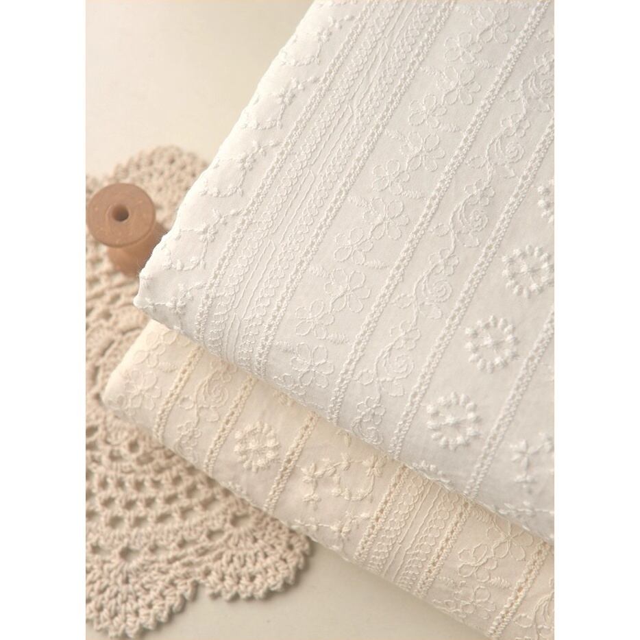 綿 コットン 生地 約140cm幅 花柄 刺繍 ストライプ 白 ハンドメイド F-0033 【お取寄せ】