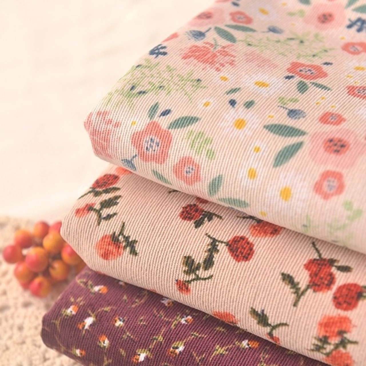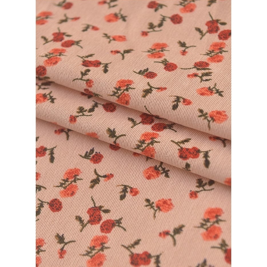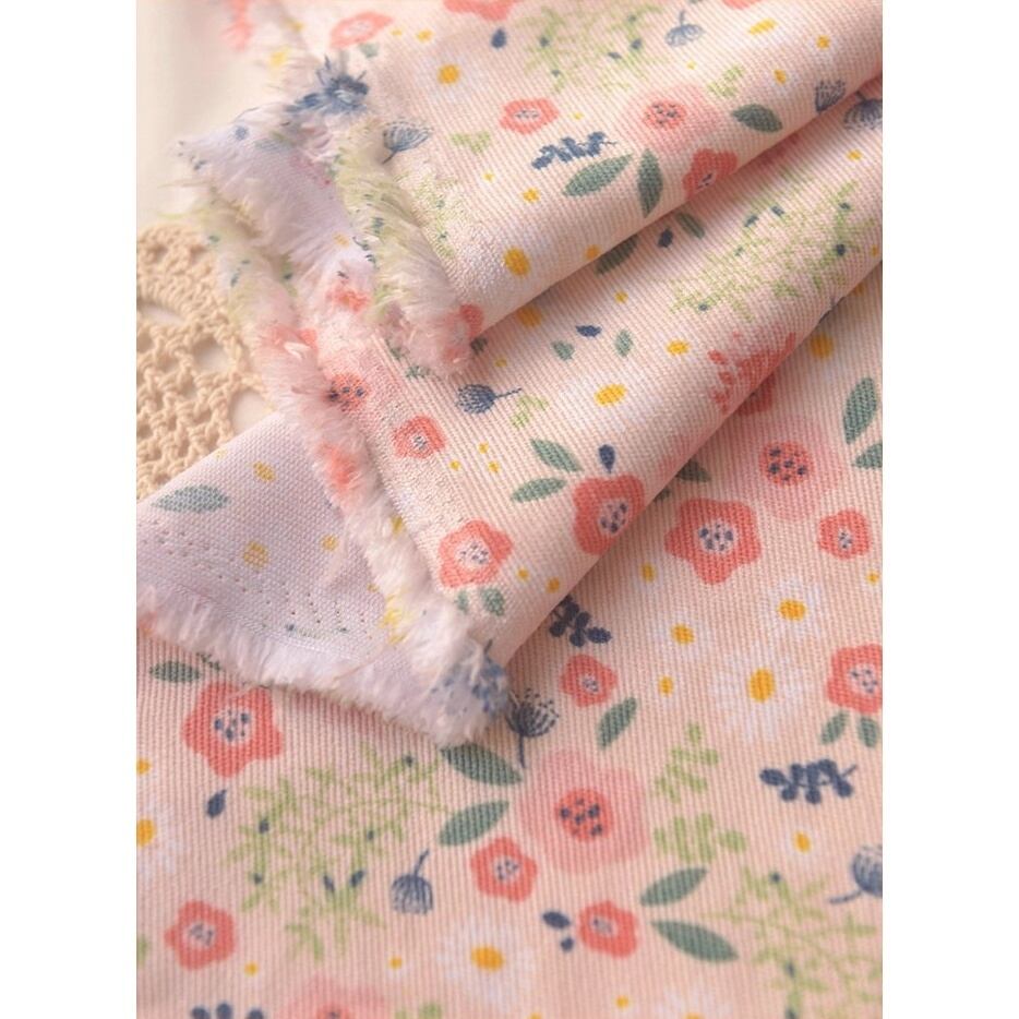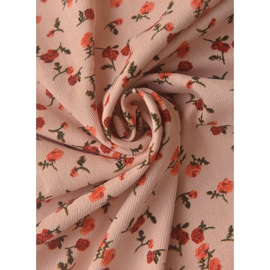 花柄 コーデュロイ ポリエステル 生地 約150cm幅 フラワー 小花柄 ピンク ベージュ ハンドメイド F-0035 【お取寄せ】