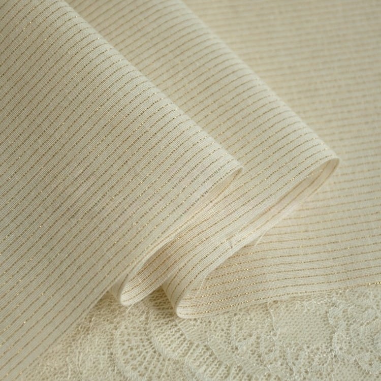 金糸 ストライプ柄 綿 麻 コットン リネン 生地 約140cm幅 綿麻混紡 ピンストライプ ボーダー オフホワイト アイボリー ベージュ ハンドメイド F-0039-1 【お取寄せ】