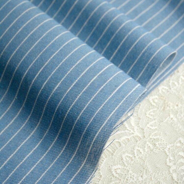 ストライプ柄 ボーダー 綿 麻 コットン リネン 生地 約140cm幅 綿麻混紡 ピンストライプ 細ストライプ 青 ハンドメイド F-0039-7 【お取寄せ】