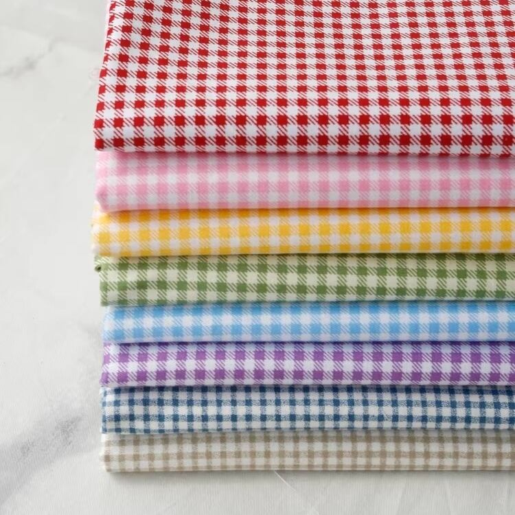 チェック柄 綿 コットン ツイル 生地 約160cm幅 シェパードチェック 赤 緑 黄 青 水色 紫 茶 ベージュ ハンドメイド F-0043 【お取寄せ】
