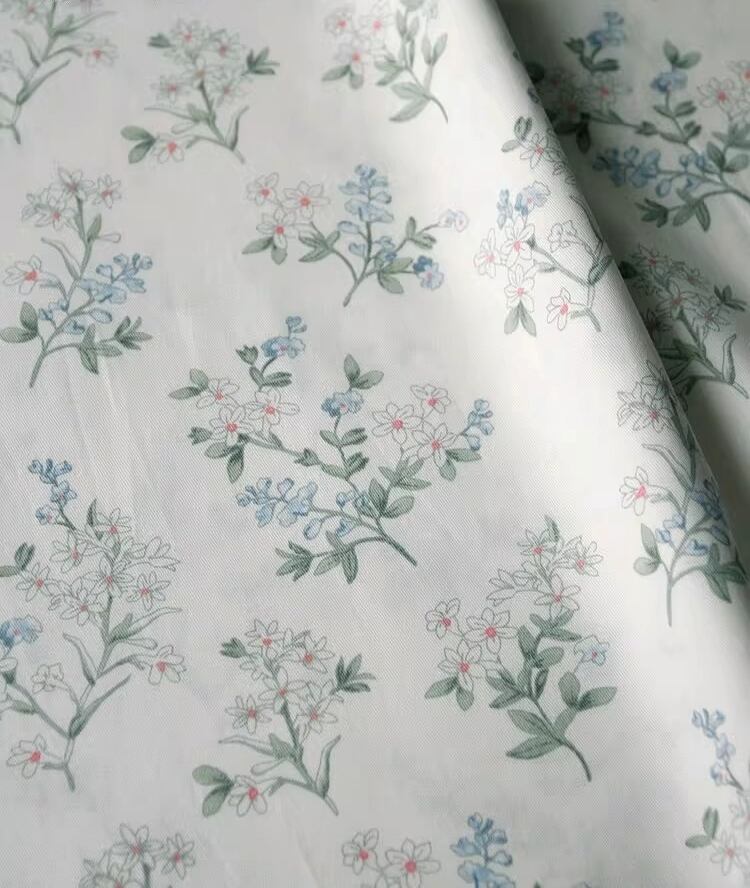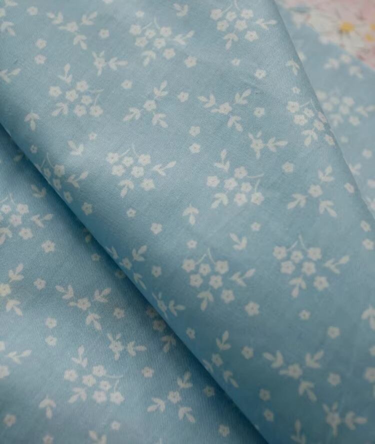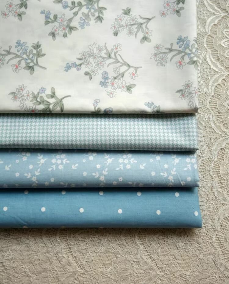 花柄 チェック柄 千鳥格子 水玉 ドット柄 綿 コットン ツイル 生地 約160cm幅 青 ブルー ハンドメイド F-0044 【お取寄せ】