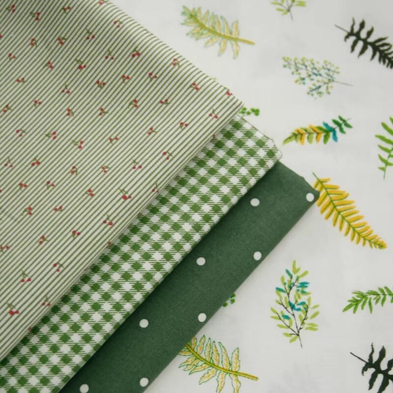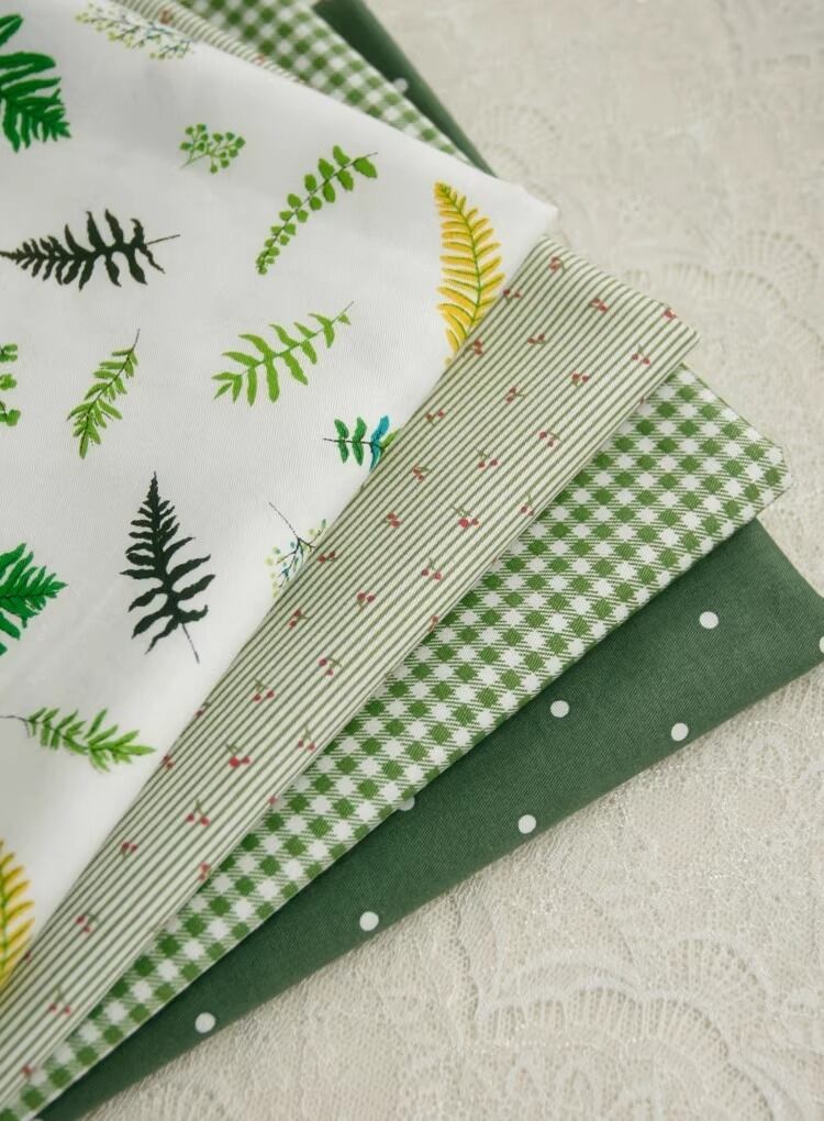 さくらんぼ チェック柄 シェパードチェック ギンガムチェック 水玉 ドット柄 植物 葉 綿 コットン ツイル 生地 約160cm幅 緑 グリーン ハンドメイド F-0046 【お取寄せ】