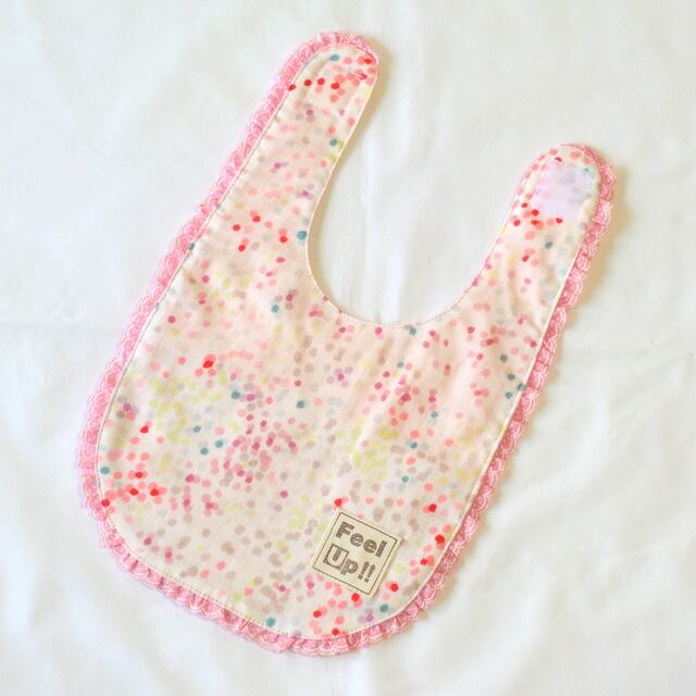 両面共にダブルガーゼを使っておりますので、赤ちゃんの肌にも優しいスタイです。