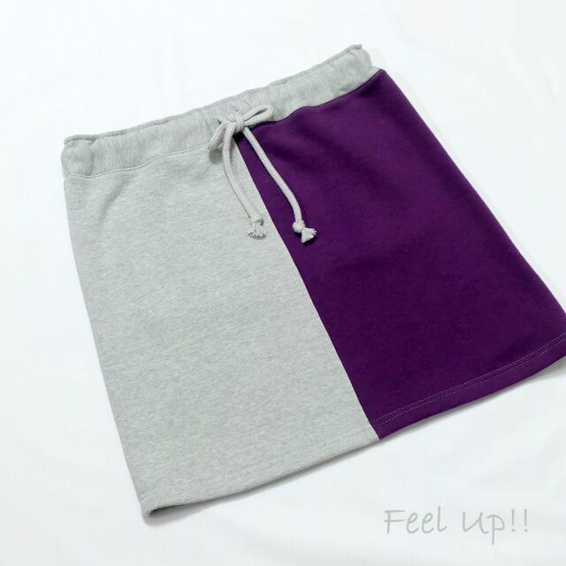 シンプルなデザインですが、前スカートと後ポケットの紫色がポイントのスウェットミニスカートです。