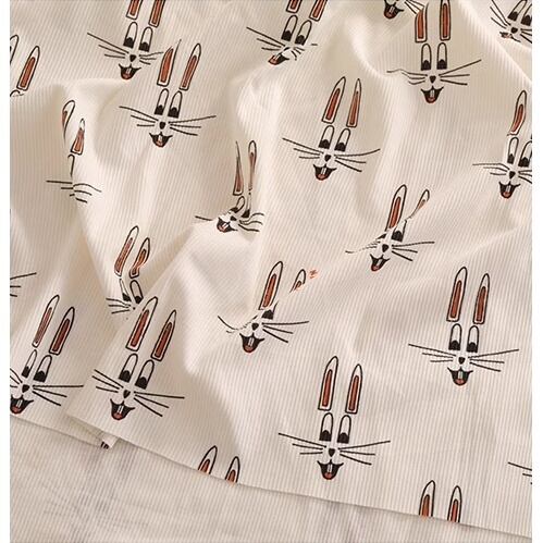 ニット 生地 綿 コットン 約130cm幅 リブニット うさぎ ウサギ ハンドメイド 子供服 ベビー服 F-0015 【お取寄せ】