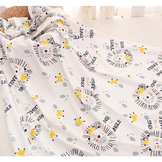 ニット 生地 綿 コットン 約190cm幅 白 ホワイト ライオン 動物 アニマル ハンドメイド 子供服 ベビー服 F-0002-5 【お取寄せ】