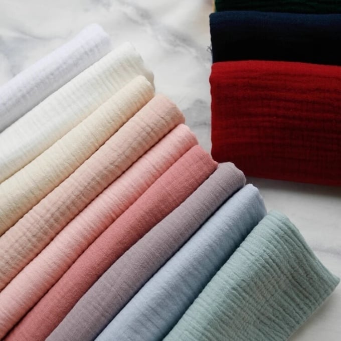 ダブルガーゼ 綿 コットン 生地 約140cm幅 白 青 緑 黄 紫 ベージュ ハンドメイド F-0020 【お取寄せ】