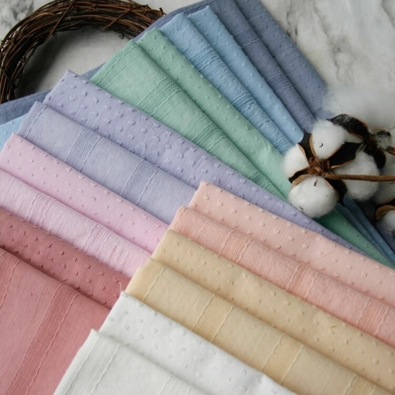 綿 コットン 生地 約140cm幅 カットドビー ジャカード ジャガード ドット ストライプ 白 青 緑 紫 ハンドメイド F-0022 【お取寄せ】